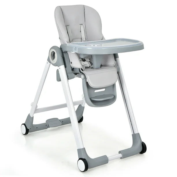 Designed to grow with your child, this high chair features a 6-position height adjustment, 5-position reclining backrest, 3-level footrest, and a 3-position food tray—perfect for feeding, relaxing, or playtime at any table height.