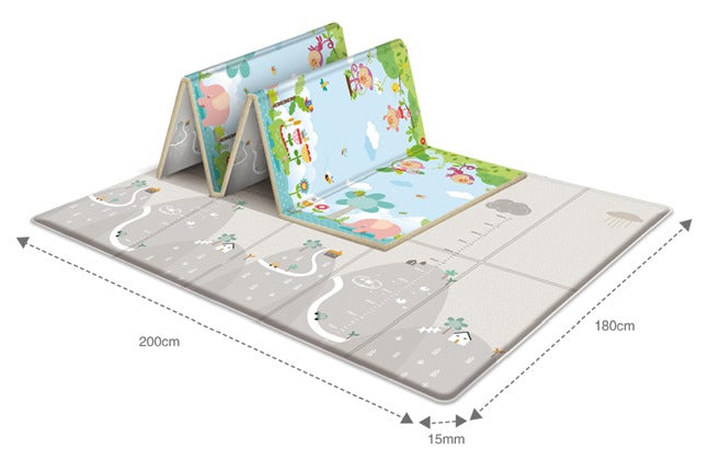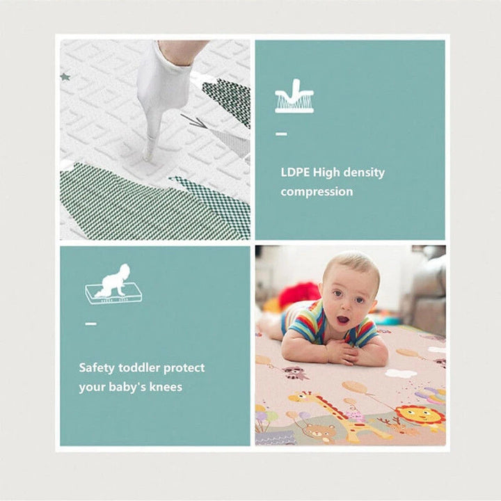 Create a fun and safe play space for your little one with this adorable animal-themed playmat. Measuring 200cm x 180cm with a 10mm thickness, it offers plenty of room for crawling, playing, and tummy time. Made from premium, non-toxic materials, the mat features soft, knitted sides that prevent tearing and ensure long-lasting use. Its foldable design makes storage easy, while the vibrant, child-friendly prints keep your baby engaged.