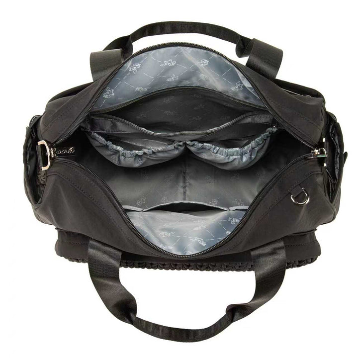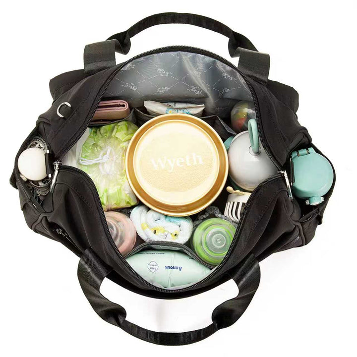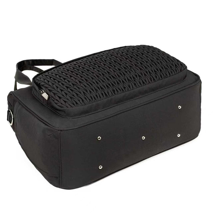 This Quilted Weekend or Diaper Bag effortlessly combines chic design with everyday practicality. Crafted from 100% lightweight nylon in elegant black it’s the perfect companion for holidays, weekend getaways, or daily outings with your little one.