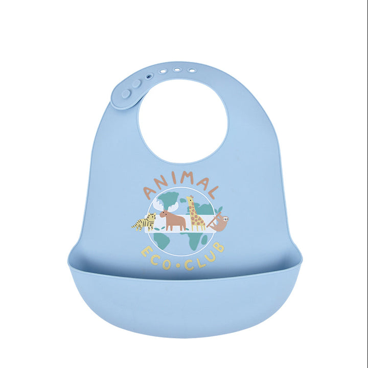 Kids anti-spill silicone bib — soft, flexible, and easy to clean, with a deep front pocket that catches all spills. Perfect for mess-free mealtime.