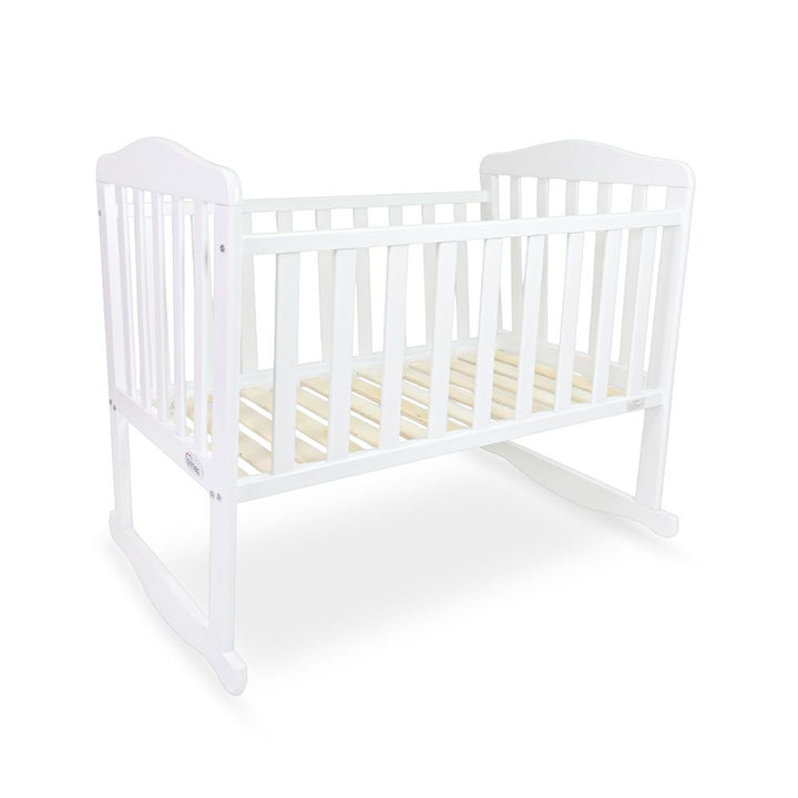 Baby Wooden Crib – White Finish with Rocking & Wheels Give your little one a safe, cozy, and stylish place to sleep with this beautifully crafted Baby Wooden Crib. Designed in a classic white finish, it easily complements any nursery décor while offering both functionality and comfort. The crib features a gentle rocking motion to soothe your baby into peaceful sleep and comes with lockable wheels for effortless mobility around the house.
